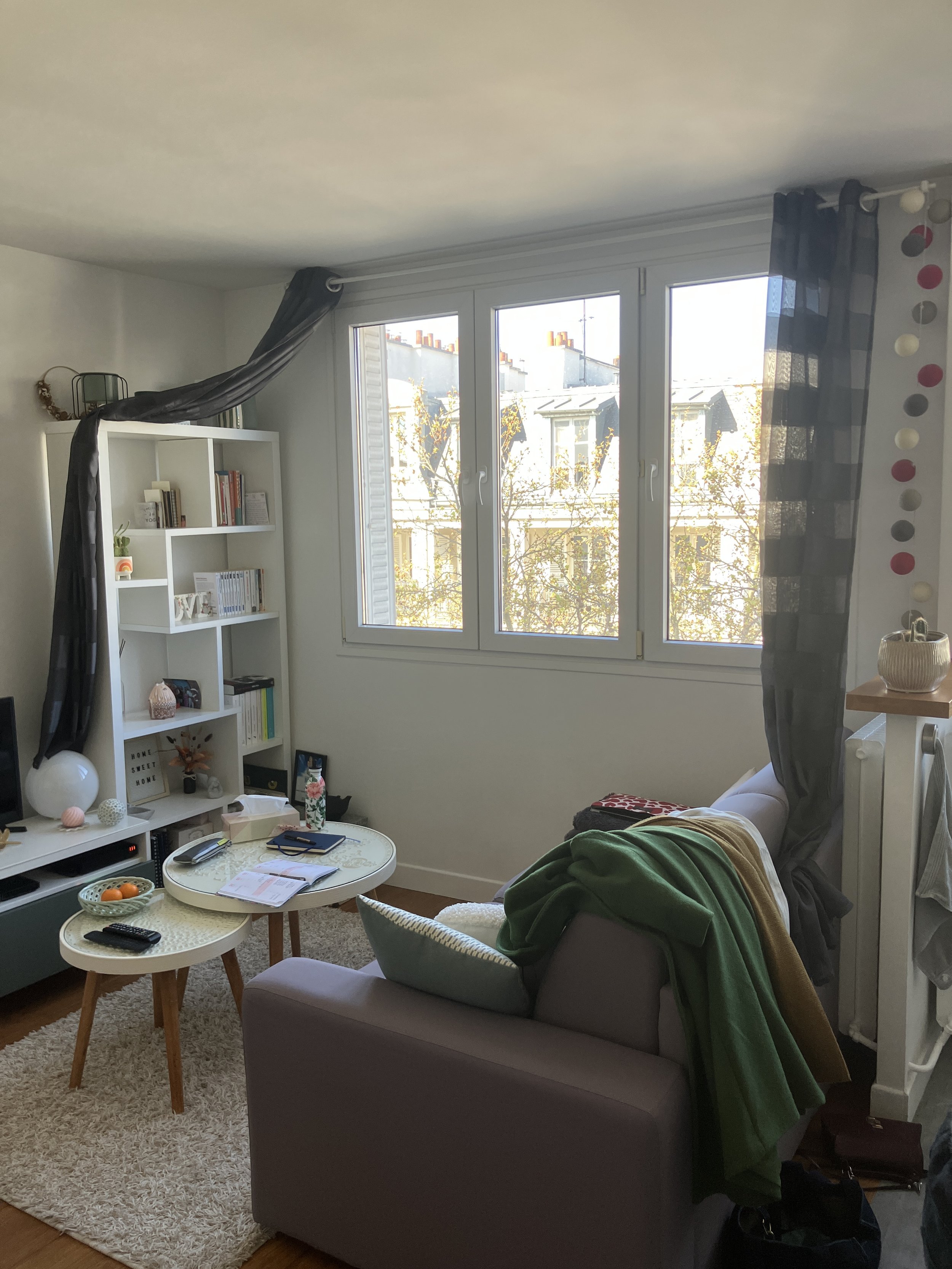 Ce joli studio de 26m2, décloisonné par le passé, avait besoin de retrouver des espaces clairement définis ainsi que des rangements adaptés.