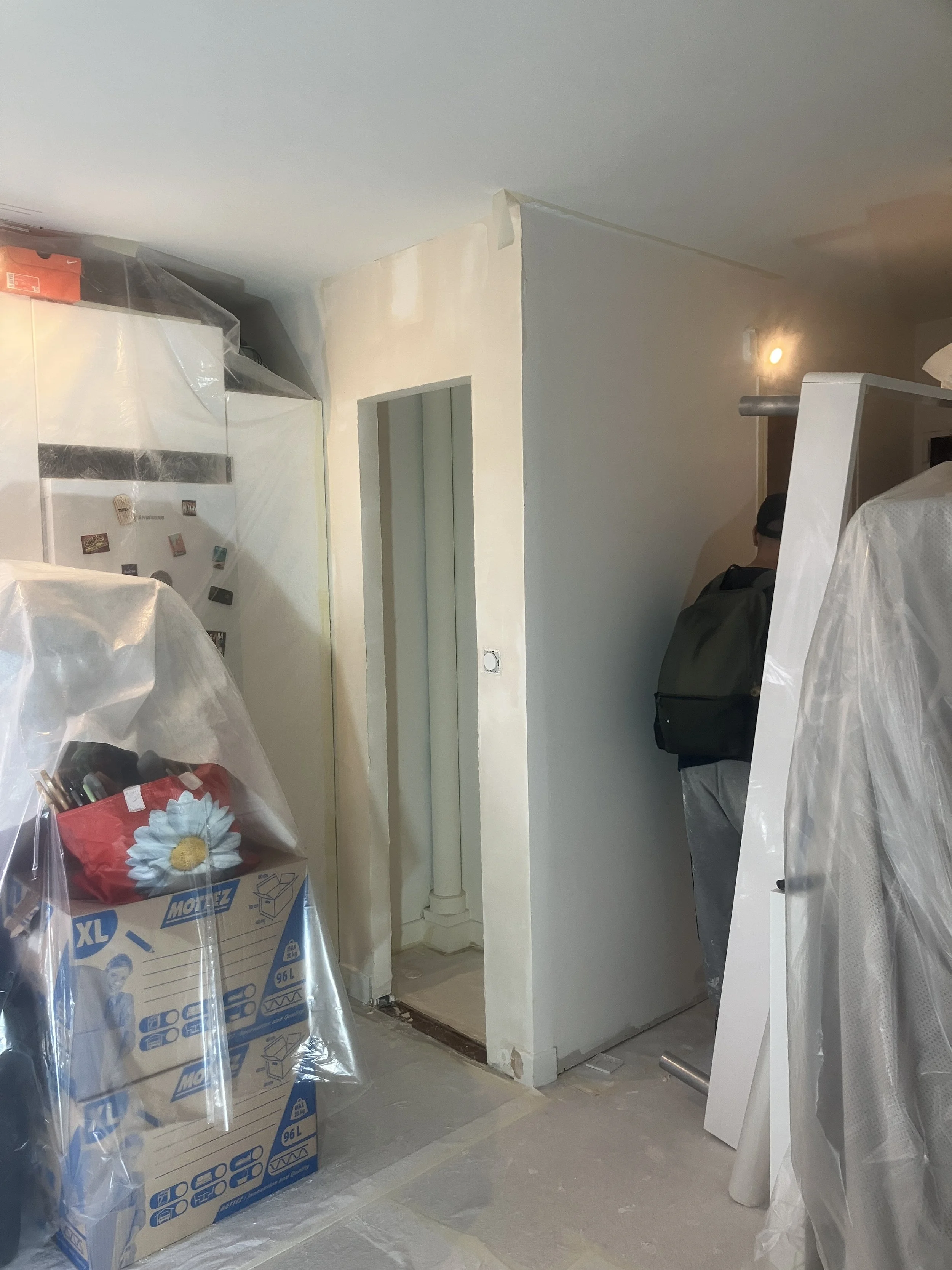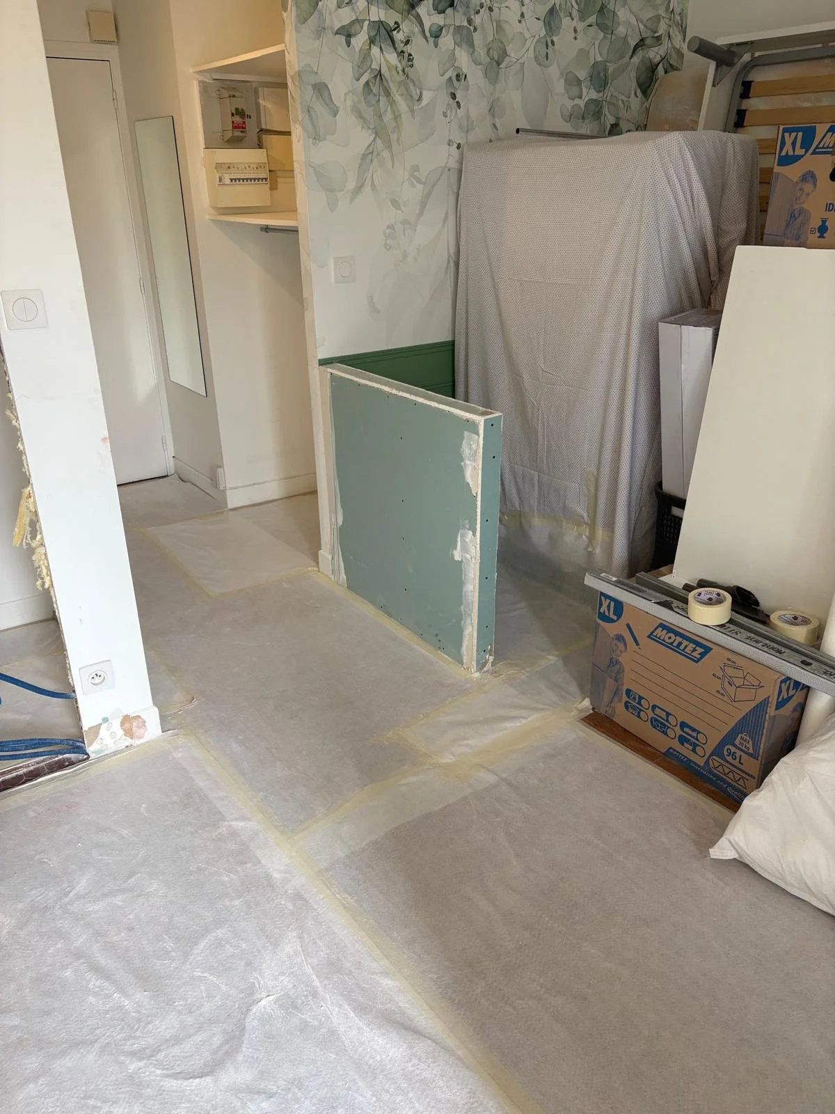 Travaux : création d'une nouvelle entrée de dressing coté cuisine. Déplacement de l'électricité.