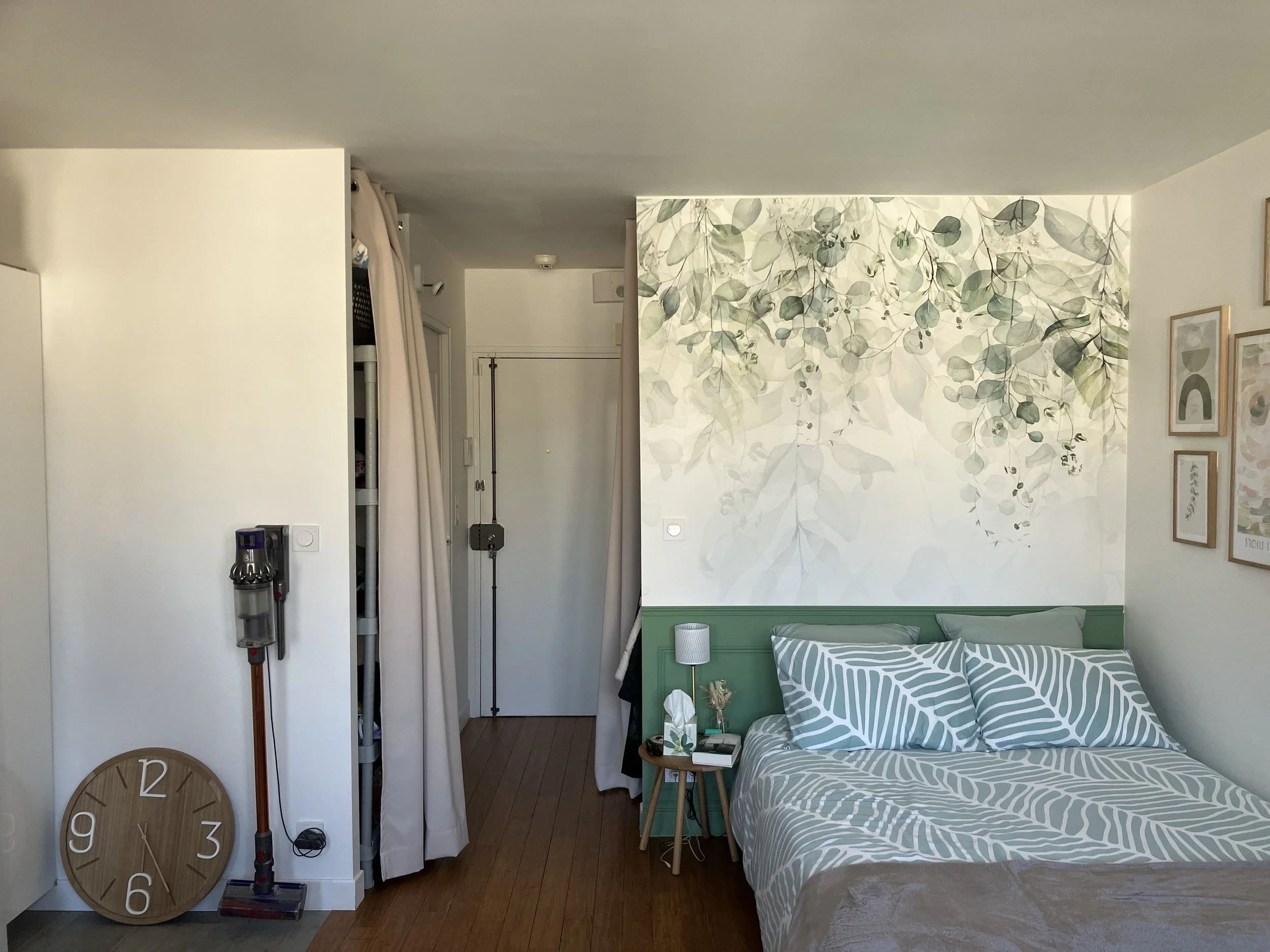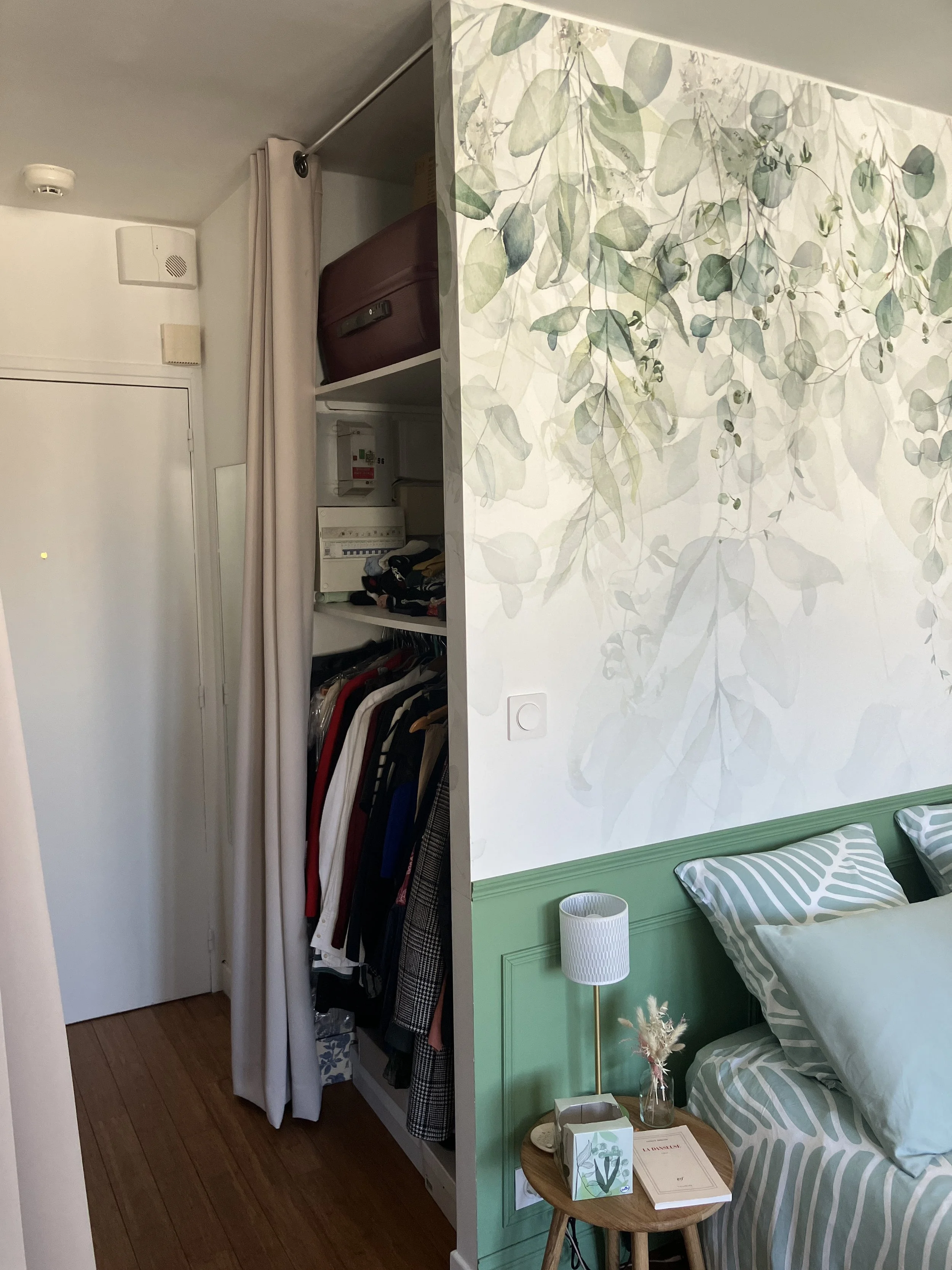 Photo avant travaux : l'entrée donnait directement sur le dressing à moitié fermé et le lit.